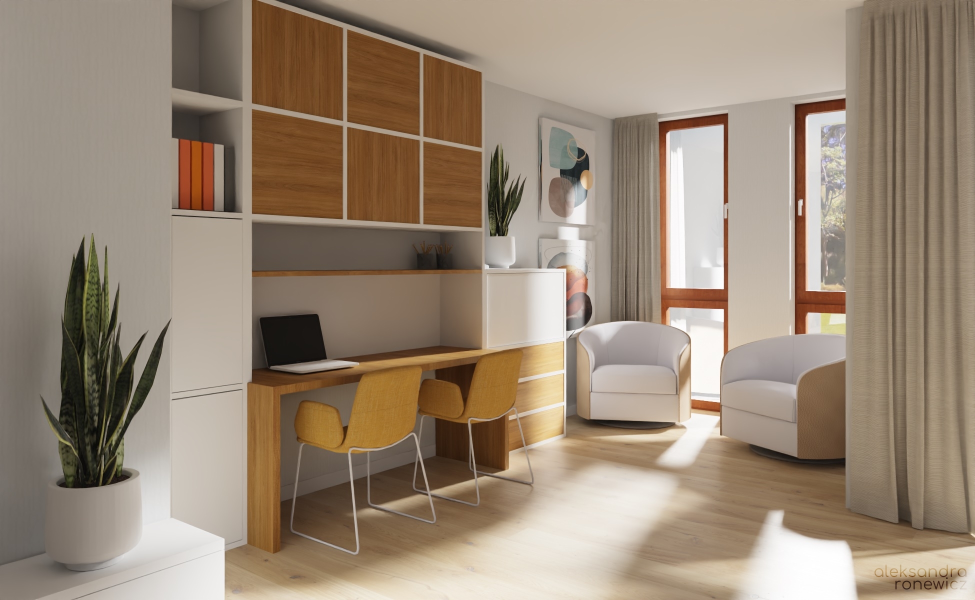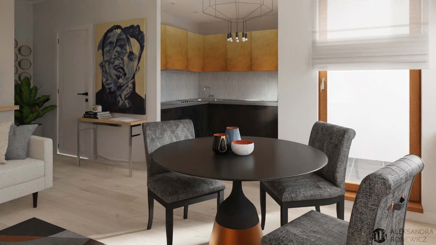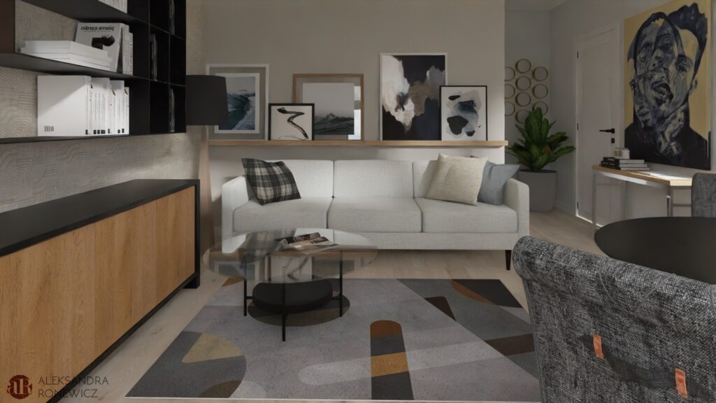 Projekt aranżacji wnętrz kawalerki na Osiedlu Magnolia w Szczecinie