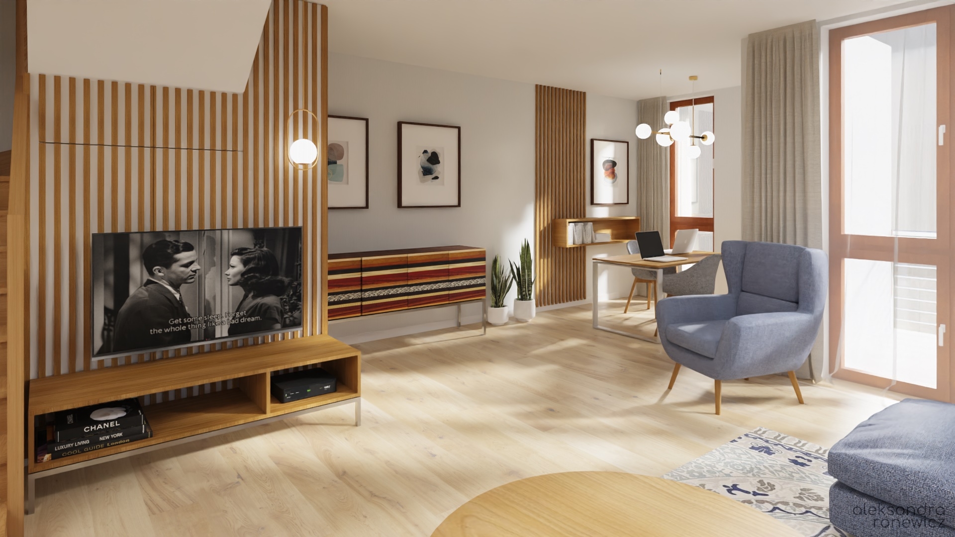 Projekt wnętrz mieszkania dwupoziomowego Szczecin ul. Duńska
