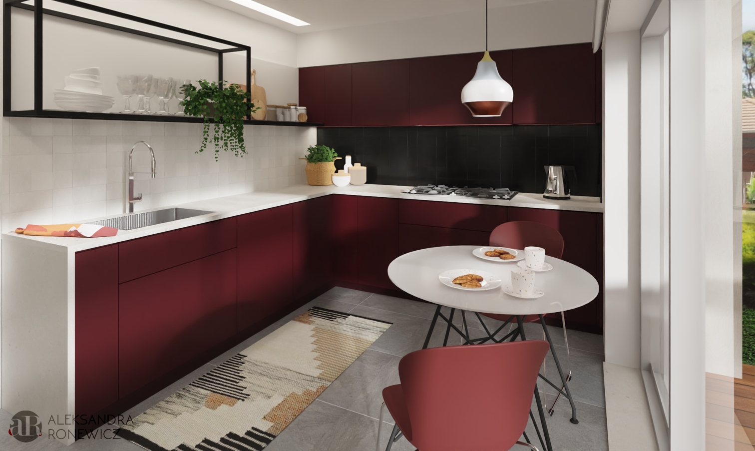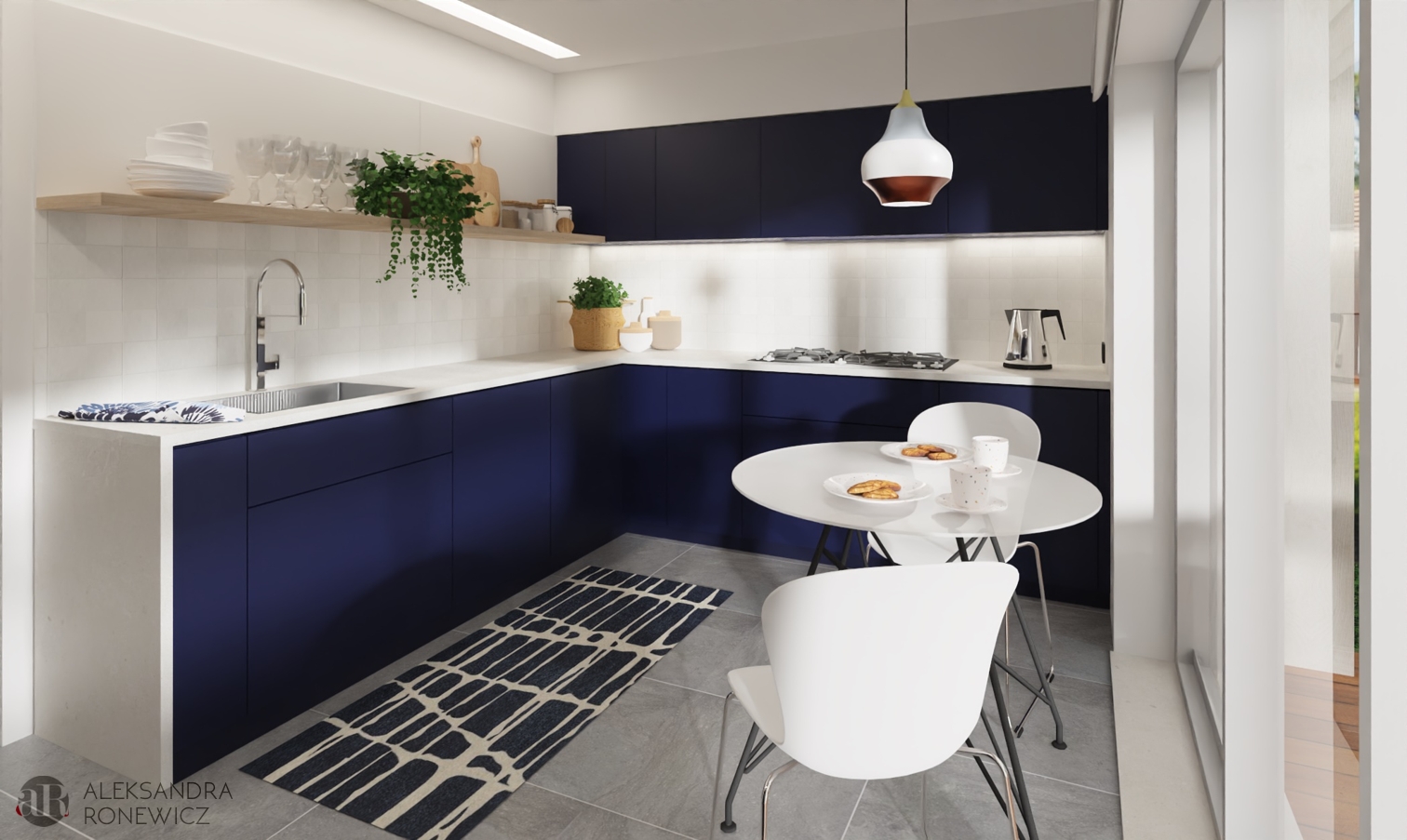 Projekt układu funkcjonalnego kuchni z tarasem / 2 opcje kolorystyczne
