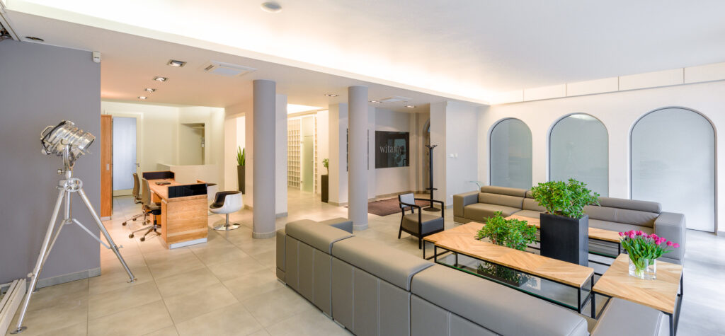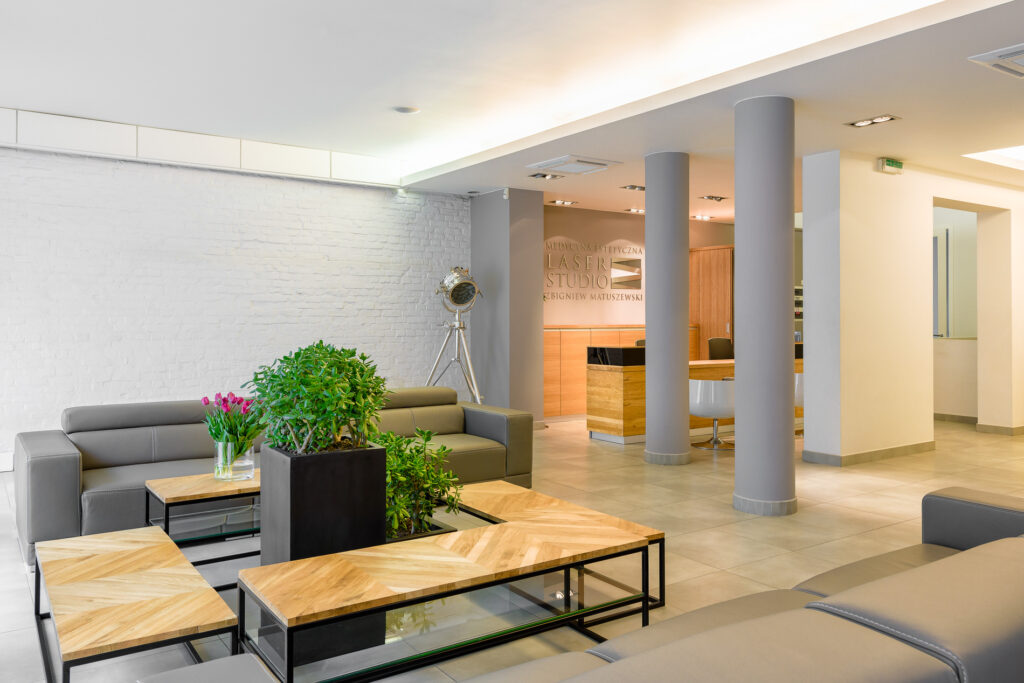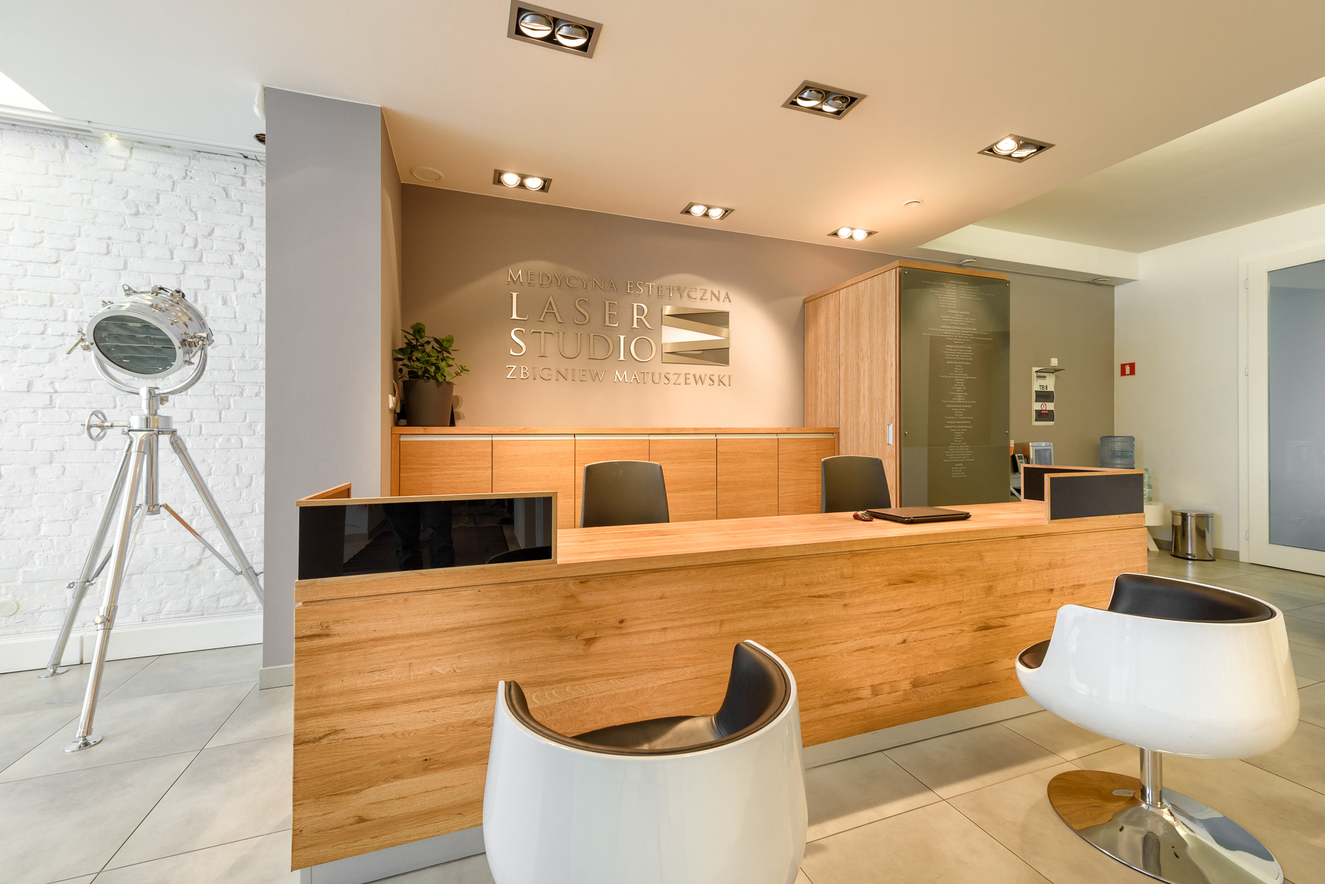 Projekt aranżacji wnętrz holu wejściowego oraz recepcji / wraz z projektem mebli / Laser Studio ul. Jagiellońska Szczecin