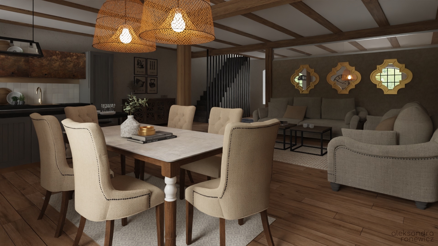 Projekt koncepcyjny wnętrz domu jednorodzinnego