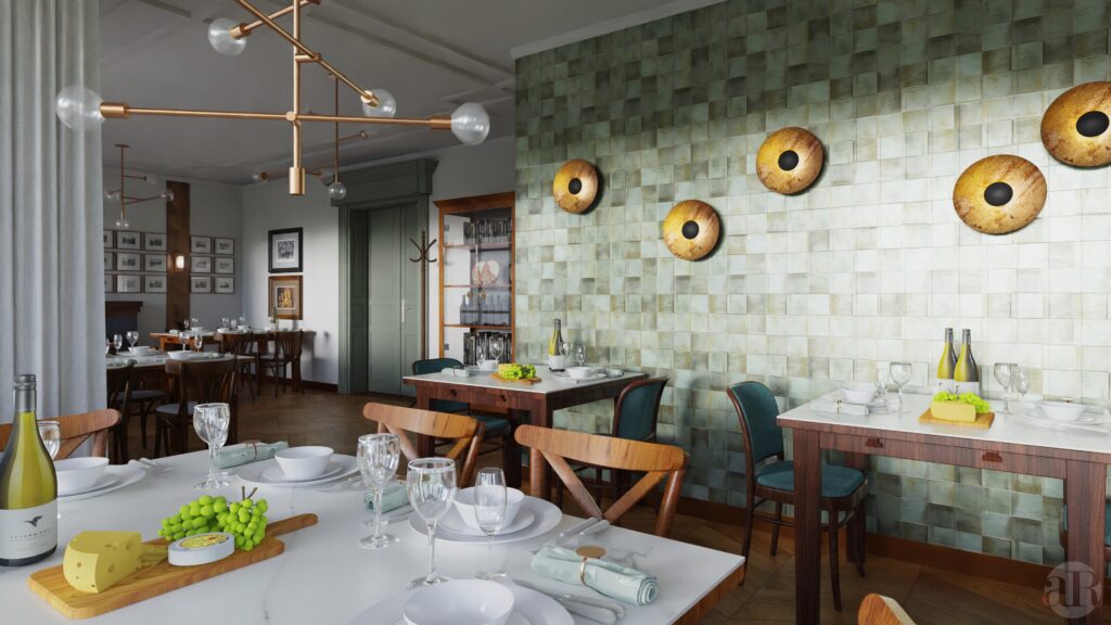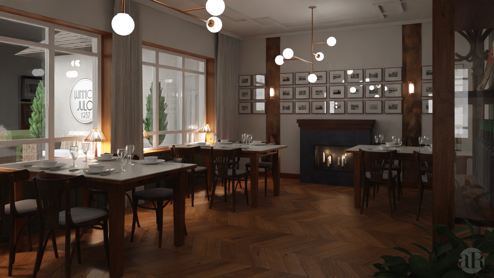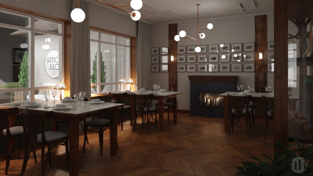 Projekt wnętrz sali bankietowej przy winnicy Julo w Szczecinie