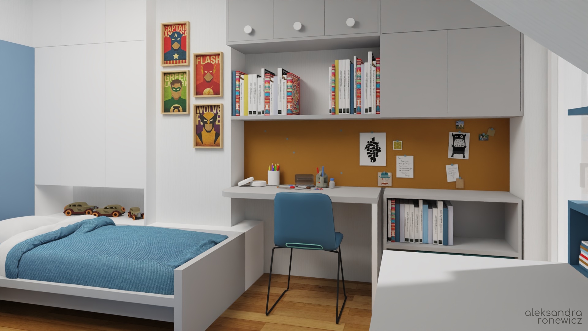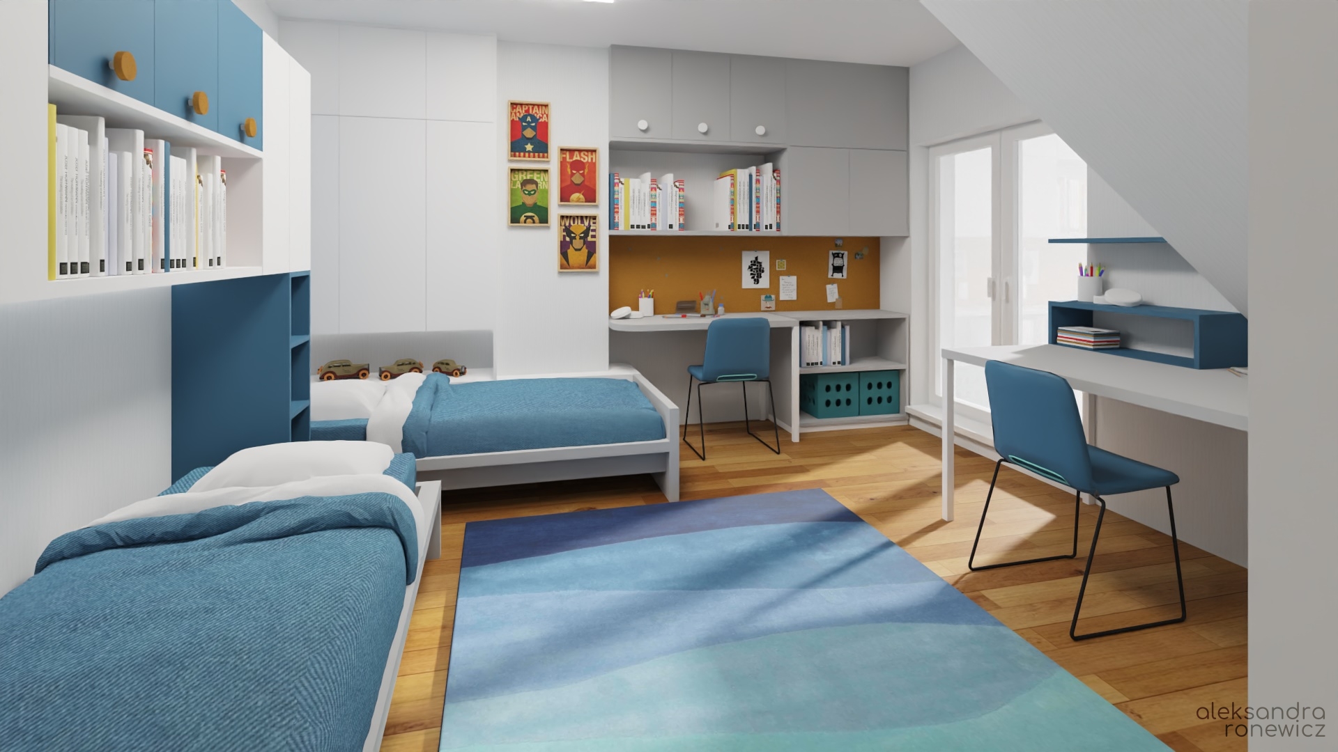 Projekt układu funkcjonalnego / wraz z projektem zabudowy meblowej / pokój dziecięcy w domu jednorodzinnym Os. Nad Stawem Mierzyn k. Szczecina